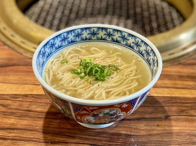 〆のミニラーメンのスープは牛ヒレ出汁でとっているとのことで、本当にヒレ肉で出汁を取っているのだそう。
