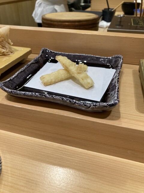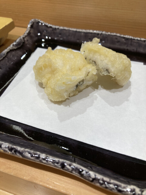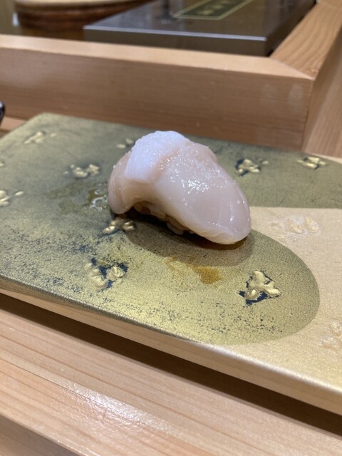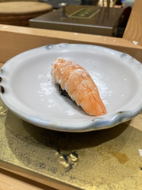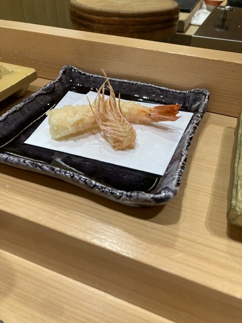 本日は鮨天コース 12000円をオーダーしました。まずは前菜ですが京ゆばいくらのせと炙り鰹卵黄醤油でした。素材が生かされた組み合わせで大変美味でした。次に握りです。大トロは赤酢とイカ墨シャリで大変美味でした。箸休めとして金山寺味噌と大根が提供されました。鯛の昆布しめ、しめ鯖・ネギ玉のせと続きましたがこちらも大変美味でした。さらに天ぷら3種と続きます。海老の天ぷらは昆布茶塩と味噌塩でいただきました。シルクスイートと万願寺とうがらしの天ぷらと続きましたがいずれもサクサクの天ぷらで大変美味でした。そのお次はいくら・ズワイ蟹の贅沢などんぶりでした。握りに戻りましていか・カラスミのせでイカ墨のシャリとこちらも大変贅沢な一品で美味でした。ズワイカニと鰻の茶碗蒸しも贅沢な一品でした。さらに神戸牛とキャビアの握りと続きましたが絶品でした。帆立貝柱は塩・すだちでいただきました。金目鯛、鱧・ベビーコーンはゆず塩、うめ塩でいただきましたが美味でした。海老はイカ墨シャリで淡雪塩のパフォーマンスも楽しめました。最後の握りは地がらしの漬けマグロでしたがこちらも大変美味でした。イカ墨のたまご焼き、べったら漬け、細巻き、鯖のお出しの赤だしと続き最後のデザートは柿とシャインマスカットのフルーツ大福でした。 お酒は強くないですが今回はまずは最初に芋焼酎佐藤、次に麦焼酎の中々をいただきました。日本酒含めたくさんのお酒が選べるお店でお酒好きの方には嬉しいのではと思います。