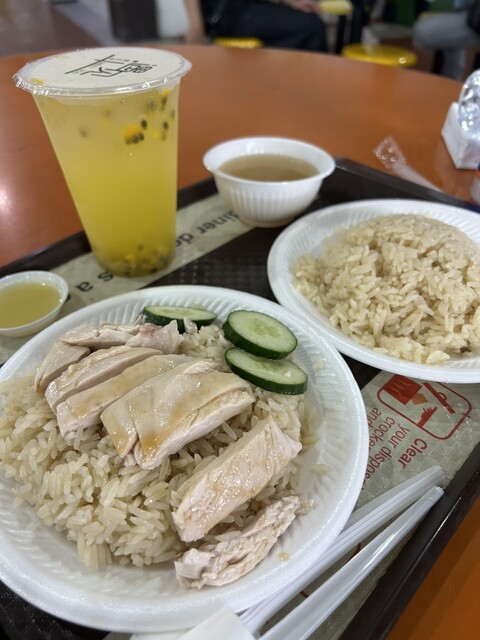 そんなこんなで、手に入れたシンガポール初チキンライス!なんと、お肉が小さい為かライスを一皿つけてくれました‼︎これで5SGD(約635円)スープ付