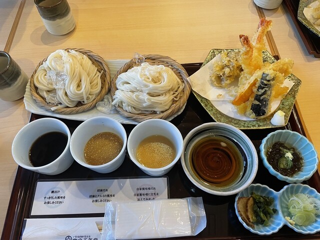 今年は雪がないはずですが、さすがの雪国。寒かったです。生麺と乾麺を味わえるセットを注文!生麺最高でした。ぜひ、食べてみてください。ここでしか食べられません。大盛りにしましたが、ペロリです。しかも大盛り無料でオススメです。他のお店と違い、混んでもないので行きやすいですよ。お土産も買えました。また、行きたいと思います。