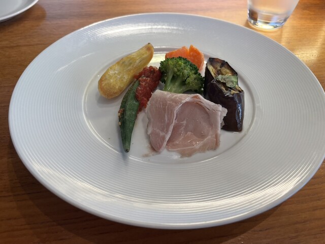 前菜は夏野菜と生ハムの盛り合わせ、、、