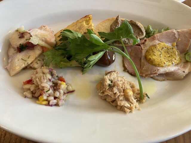 ランチはコースで前菜、パスタをそれぞれ選びます。デザート、コーヒーも付いて、どれも美味しく頂きました。グラスワインも種類があって選べます。