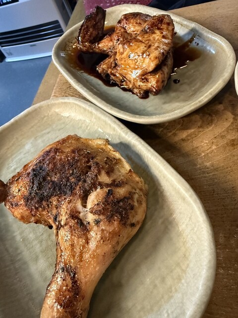 店内に入ると、香ばしい煙と活気ある雰囲気に包まれ、まずは名物の「新子焼」を注文。甘辛い濃いめのタレがしっかり絡んだ鶏肉はジューシーで、噛むたびに旨味があふれ出す。ボリューム満点ながら食べ進めたくなる味わいで、ビールとの相性は言うまでもない。さらに名物の7本セットは1050円と非常にリーズナブルで、新子焼だけで十分に満足感が得られる。