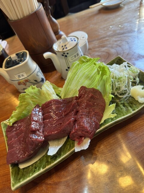 馬刺しは分厚いけど箸で切れるくらい柔らかく、肉?何、これ!って感じ。