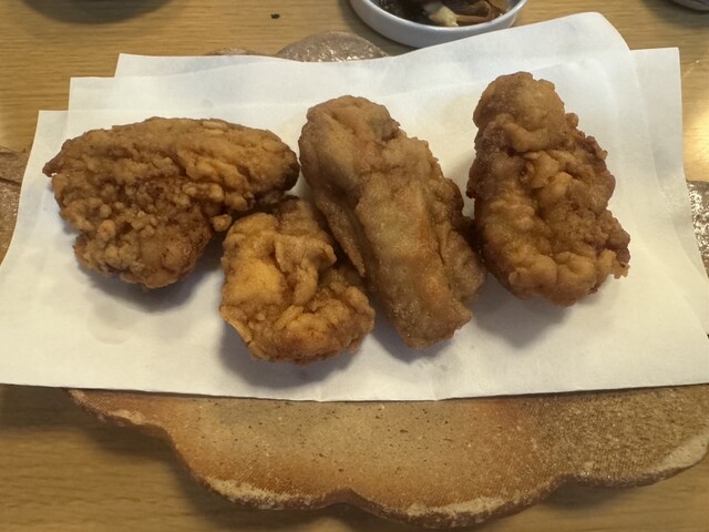 からあげは骨はついているものの、カリッとおいしく揚がっていて、骨までしゃぶってしまう。