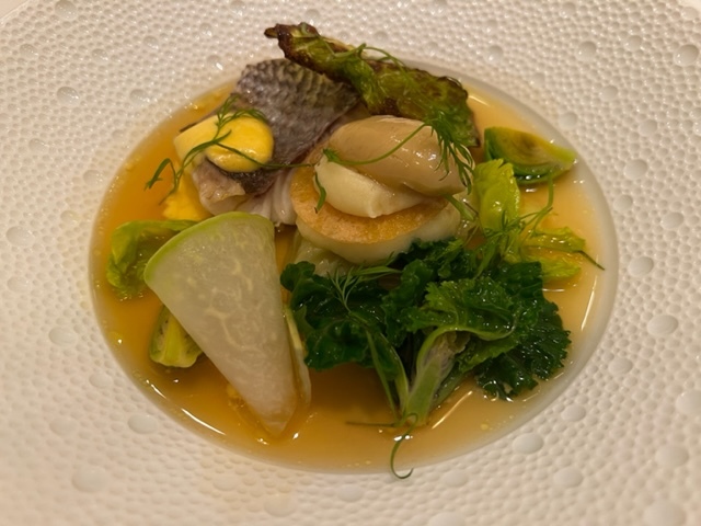 真鯛のヴァプールといろいろなキャベツ アンチョビのブールコンポゼ 柚子のサバイヨン クリアな雛鳥のジュ