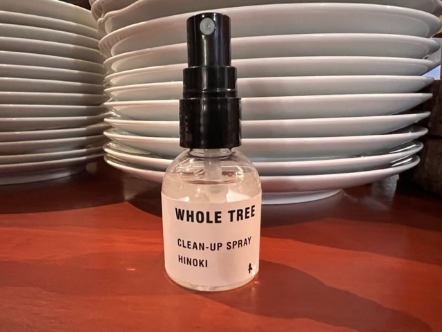 テーブルに置いてあったWHOLE TREEの除菌スプレーがヒノキの香りが強く素敵だった。