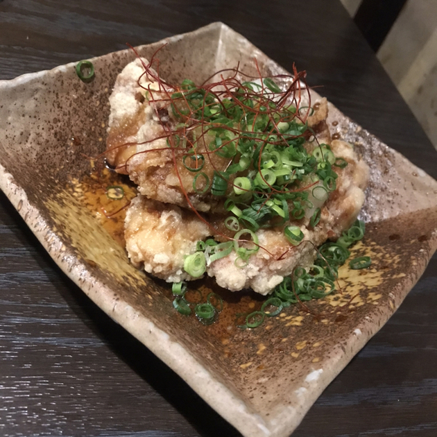 料理はどれも美味しくて、この値段でこの量なら○!サーモンとアボカドのわさびサラダのサーモンが沢山入っていて、大喜び。若鶏の唐揚げ鬼おろしチョモランマも量が多く、大満足。ポテトフライマスカルポーネ添えのポテトは皮付きのザクッと太め。エリンギガーリック焼きのガーリックも適度に乗っていて、美味しかった。