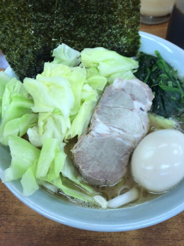 前回、ライスを付けて胃にもたれたので(歳だね…)、今回はグッと堪えてライスを断り、ラーメン並+キャベツにする。隣の兄ちゃんは、朝6時台で躊躇することなく味濃いめ、油多めで中ライス。若いってスゲーな。
