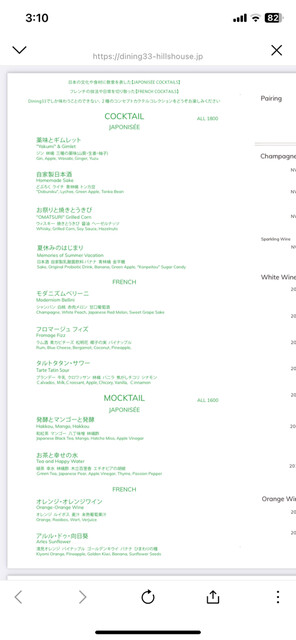 ドリンクはせっかくなのでカクテルを