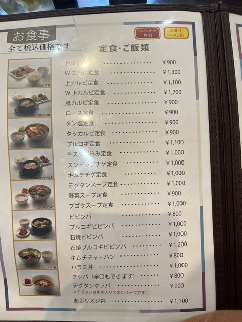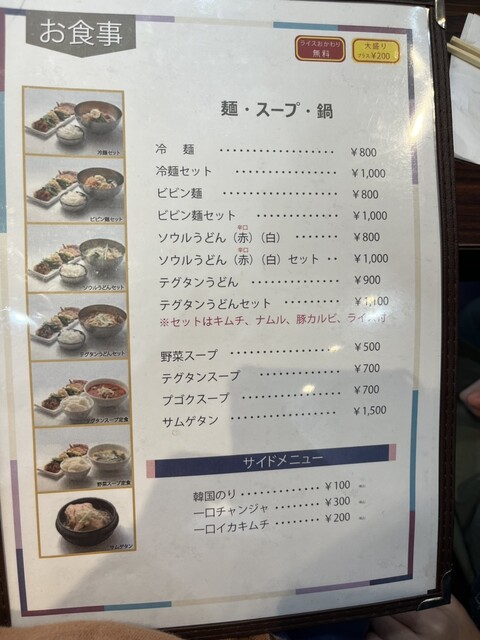 プルコギ定食、うどんセット、スンドゥブ定食を注文