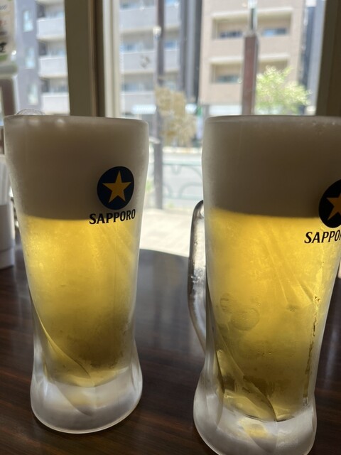 オレンジジュースとビールを頼んだらチャプチェの小鉢がついて来ました。