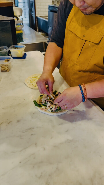 菜葉・卵・オレガノ・マッシュルーム・グラナパダーノ)