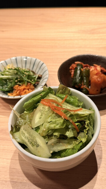 【前菜】 キムチ盛り合わせ(白菜・オイ・カクテキ) ナムル盛り合わせ(豆もやし、にんじん、ほうれん草、ぜんまい、水菜) どれも丁寧で、和牛への期待を自然に高めてくれます。