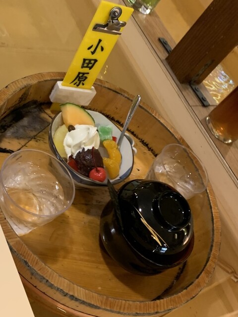 小田原の札に食券を挟んで流れてる「たる舟」の上にのせました。