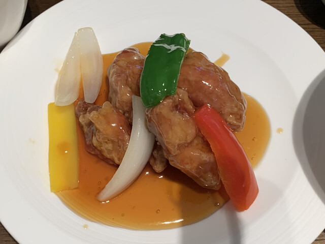 酢豚も大海老のチリソースも美味しく、また分量がちょうど良いです。お互いにちょっとつまみ食いができる。
