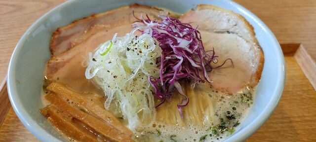 濃厚な旨味の鶏白湯に海苔の風味が絶妙にあう。