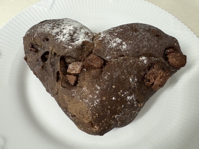ハート型でチョコがザクザク入ったパンは、ベーグル的な生地がモチモチしていて噛みごたえも十分。