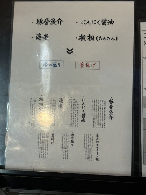 つけ汁は、ニンニク醤油と魚介豚骨にしました。