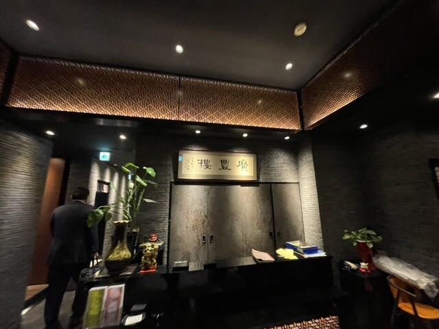 個室でのコース料理。前菜、フカヒレ、牛肉の中華風ステーキ、デザートの杏仁豆腐など全てが一流の味。
