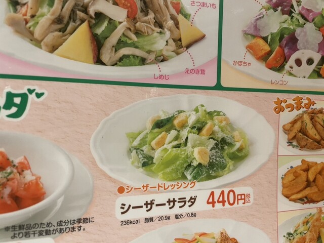 いつものシーザーサラダ、げんこつハンバーグ、和食セット。