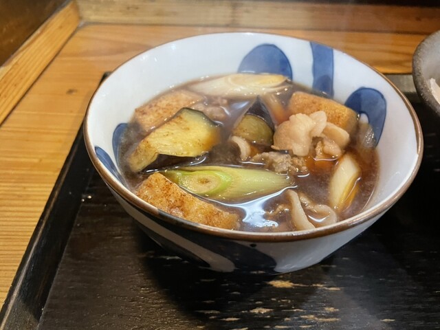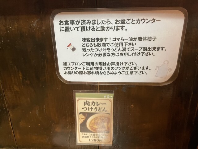 初めてだったので、武蔵野うどん定番の肉じるつけうどんの並盛りに揚げナスの食券を購入。麺は極太麺の冷や盛りで店主さんに注文。クレジットカード使えます。