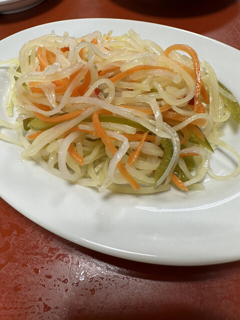今回は頼んだ事のない物を、という事でニンニク唐揚げ・四川風ジャガイモを初注文。