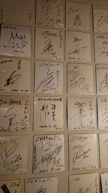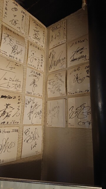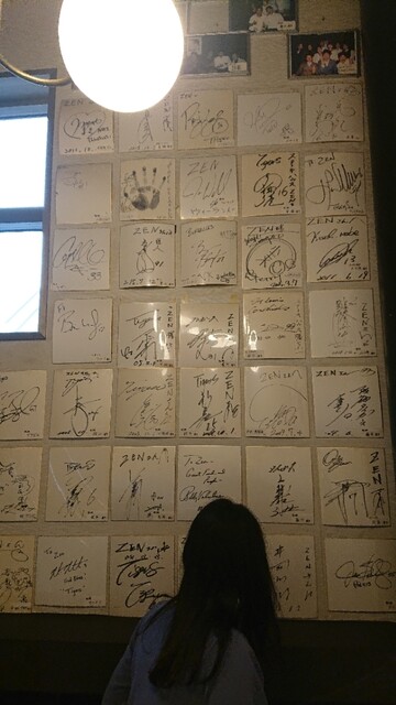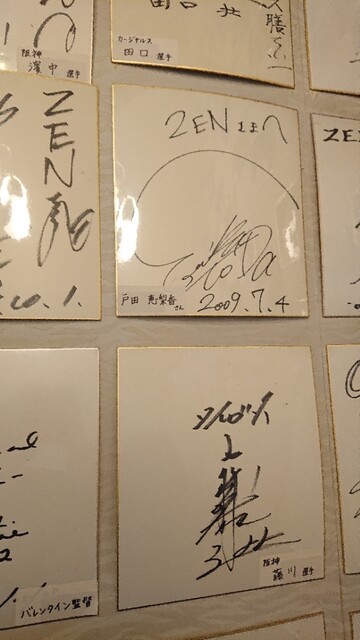 階段には有名人のサインがあり、阪神の選手が多い