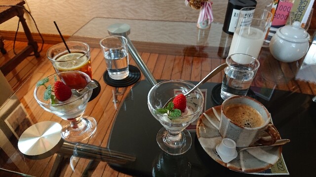 イチゴのアイス、珈琲と紅茶を選べる