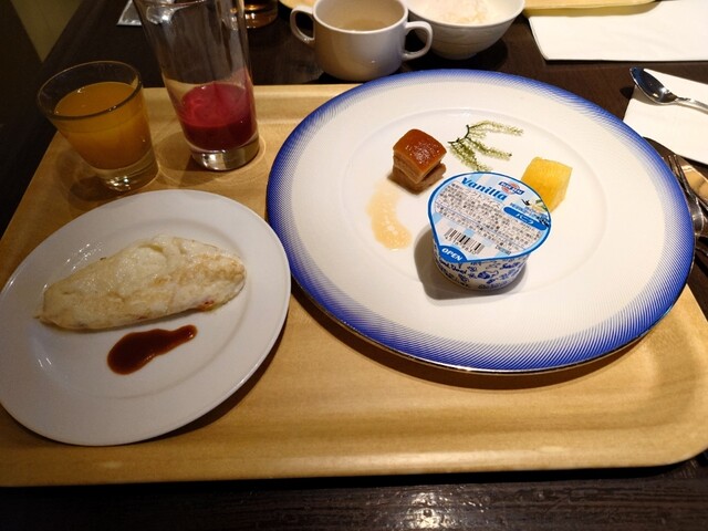 沖縄産フルーツ(ドラゴンフルーツ、リンゴ、パインなど)や、パティシエ手作りスイーツが贅沢✨。