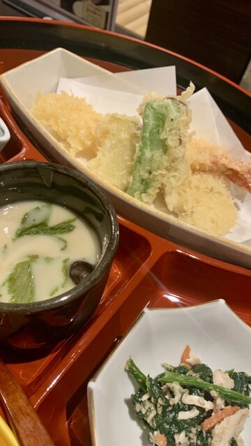 新鮮で分厚め。 天ぷらは、大きな海老天が、ぷりっと衣はサクっといい感じ 小鉢や茶碗蒸しもついているのでコスパ良きです✨