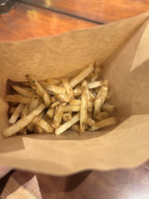 ここのチーズバーガーはカリカリに焼いたチーズが挟まれてて最高なんだよ。