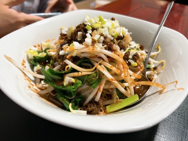 そして汁なし担々麺。”花椒を効かせた痺れる辛さ” とのメニュー表記はあったし、そこそこ辛いイメージはありましたが、記憶以上です。今日は、ちょっとサービスしてくれたんじゃないかというツンとした辛さ。細めの麺に、旨みがしっかり効いたそぼろも良いですね。やっぱり美味しい!