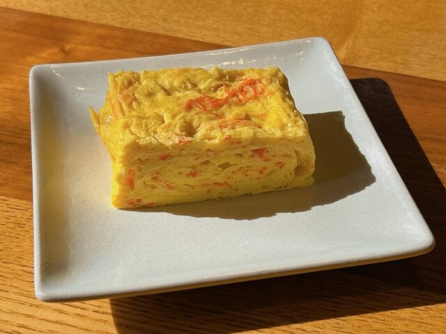 なぁんて思っていたら、皮がカリカリに焼かれている旨みシッカリの鮭と蒲鉾が追加。更に、ニンジンを練り込んだ卵焼き、削りたてのかつお節。そして、3種類のおかずが追加で、結構な量でした