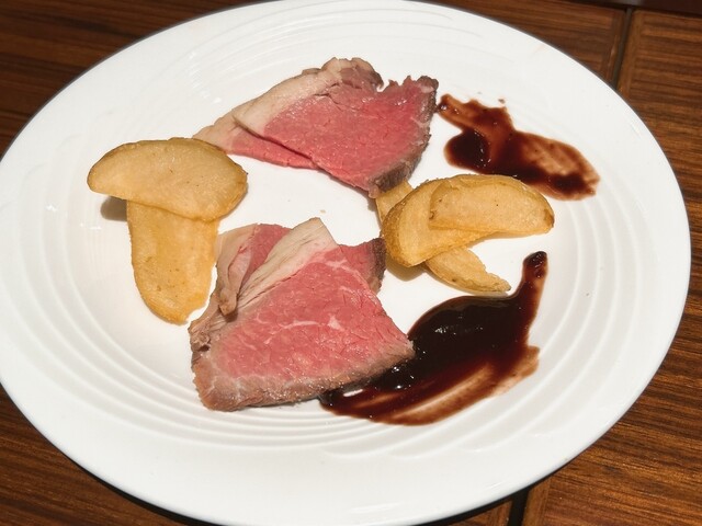 そんなこんな食べていると、最初に聞かれたローストビーフが登場。恐らく単価が高いので、ビュッフェコーナーに置いているのではなく、各人に一人分ずつ提供されているのかな。シットリと旨みも十分で、ホントはもっと食べたいところですね(笑)