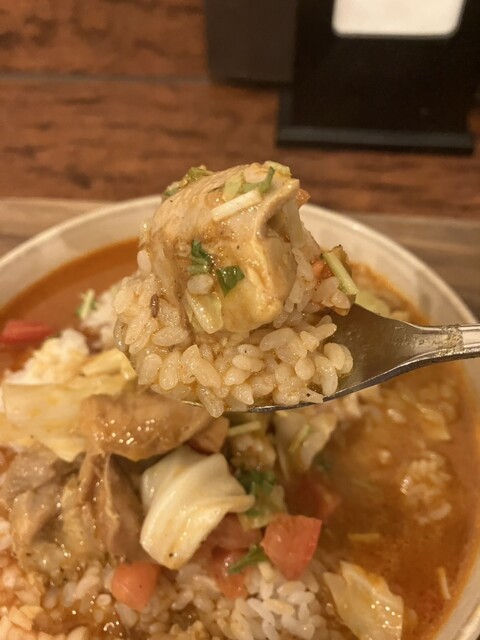 いやっ! 旨すぎでしょ。チキンのダシがしっかり出ているのか、辛さよりも旨さが前面に来る。サイコロ状にカットされて入っているトマトの旨味も加算される。素晴らしく計算されたパーフェクトなカレーだ。