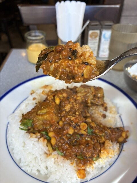 5分後、ビーフ豆カリーが供される。いつものチキン豆カリーと少し雰囲気が違う。