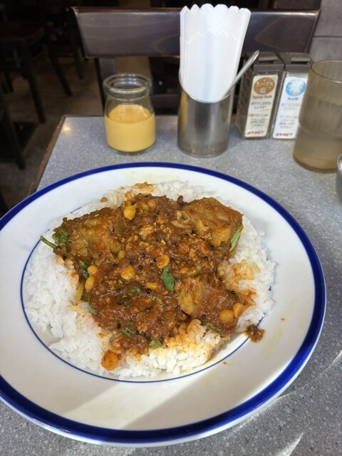 注文から12分でチキン豆カリー配膳。まだお客さんが少ない時間帯だったので、いつもより少し早い。
