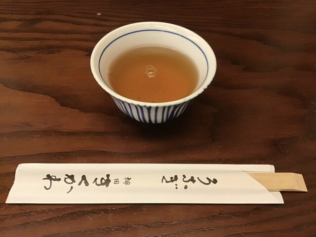 この日は日比谷帝国劇場地下の名店『神田きくかわ』を予約して訪問。テーブル席について、お茶を飲みながらメニューを軽く確認。店員さんに質問。