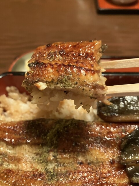 関東の蒸してから焼くうなぎは、この食感が堪らない。香り良し、味良し、食感良し。それを知っているから見た目良し。