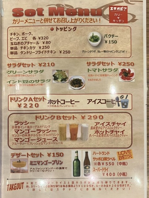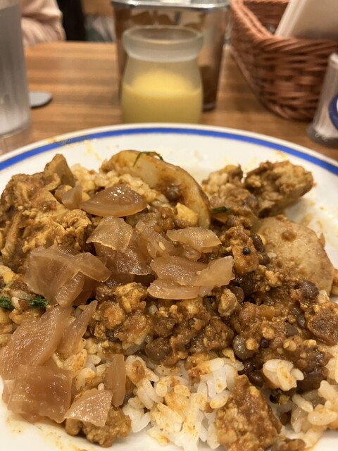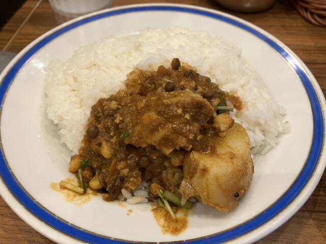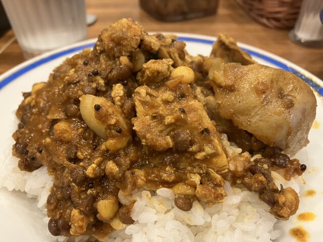 本店でいつも食べているものと同じものを注文。せっかく別店舗に来たので本店にはないメニューを食べようかと思ったが、一番好きなチキン豆カリーの呪縛から逃れることが出来なかった、笑