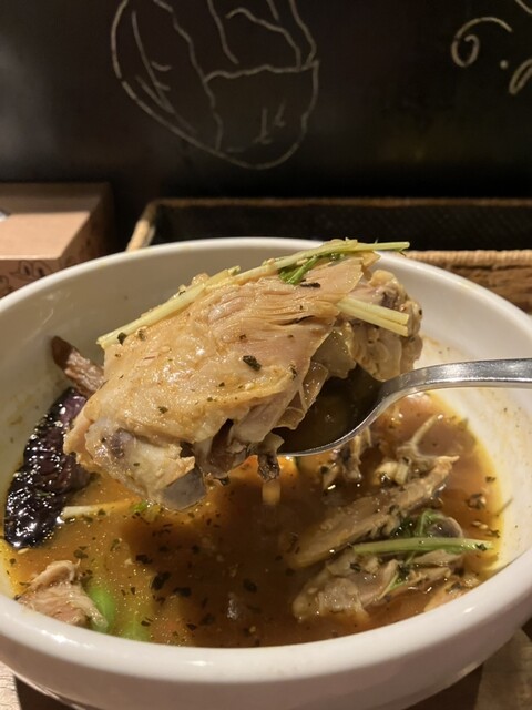 うん、うん、うん。文句なし! カレースープを纏った柔らかチキンのなんと旨いこと。素晴らしい。