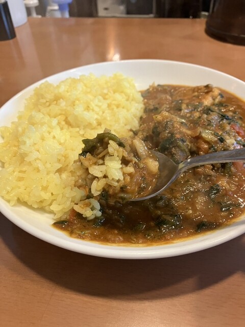 途中で混ぜカレーにする。カレーは混ぜたほうが断然旨い。とくにこのお店のカレーは混ぜカレーに適している。知らんけど。