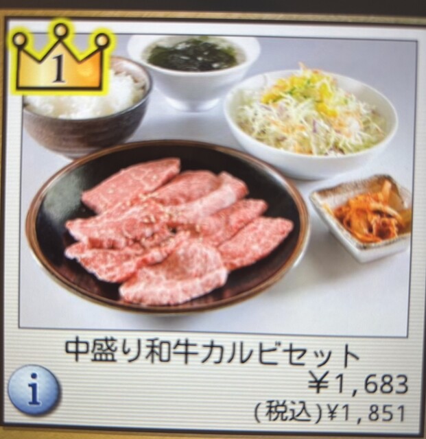 【ランチ】中盛り和牛カルビセット 1,851円(税込)