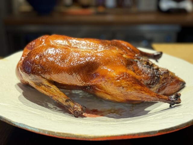 目の前に、ドーンとこんがり焼かれた丸々の北京ダック
