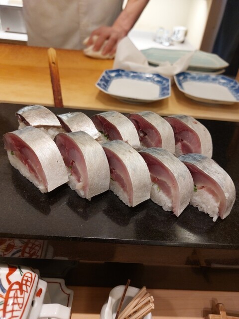 目の前で手際よく握られていく鮨、見ているだけでも楽しくなります。他の客に提供される鮨を見ながら、どれを追加しようか選びます。