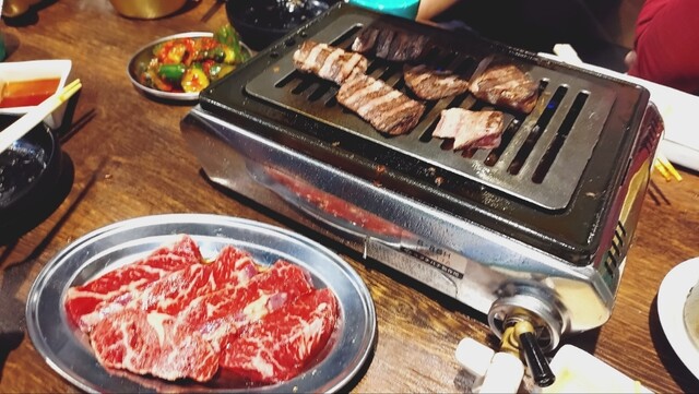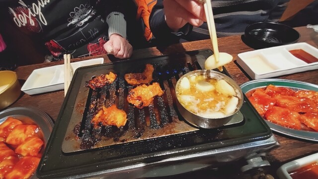 店主の方が、本場の韓国方で食べる肉はどれも美味しいです。普通に、肉を焼き白飯をかっ込み、チャミソルやマッコリで酔うのも最高ですが…オススメは、ニンニク焼きを注文です。たっぷりのニンニクがゴマ油でボイルされ…その油が最高です。レバーを注文してニンニク油に潜らせても美味い。ニンニク油を白飯に垂らしても美味い。とにかく、アレンジのしがいが有る万能調味料です(笑)。