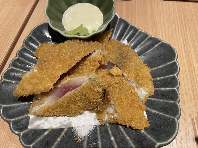 まずはお店の目玉である「玉手箱」のお刺身盛り合わせ、レア鯵フライ、マグロ巻きは必須⭐︎その他にも鯖の炙り焼き、いぶりがっこ、鮪のレアカツ…もう全部最高⭐︎