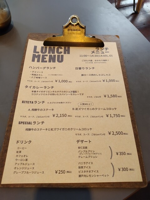 土日なのにランチメニューも、ハンバーグランチと日替わりランチが税込み1,000円というお手頃価格が嬉しいところです。