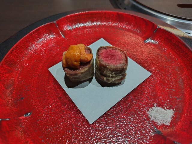 肉割烹を頼みました。どれも美味しかったですが、特に雲丹とヒレ肉の天麩羅、シャトーブリアンステーキや、サーロインをトリュフを添えたすき焼きとして頂くのはとても美味しかったです。地味に土鍋で炊き立てというお米も美味しかったです。